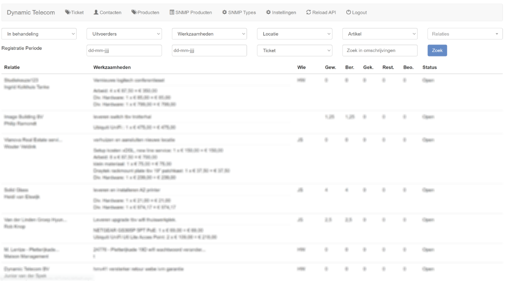 Realisatie CRM applicatie voor het registreren van Tickets, beheren relaties en versturen van facturen middels een API koppeling met SnelStart.