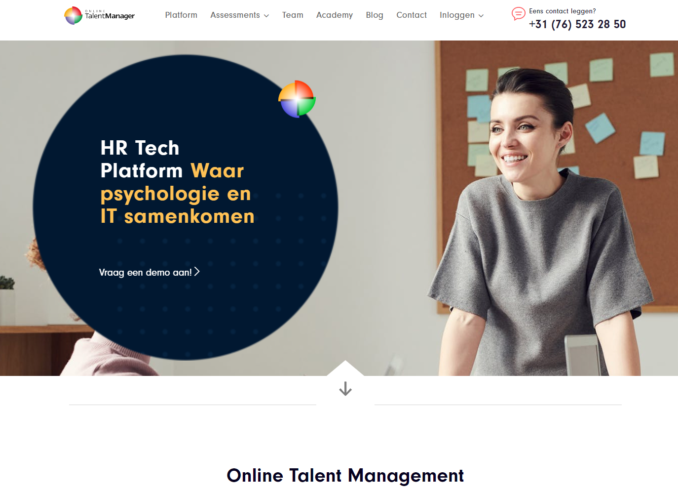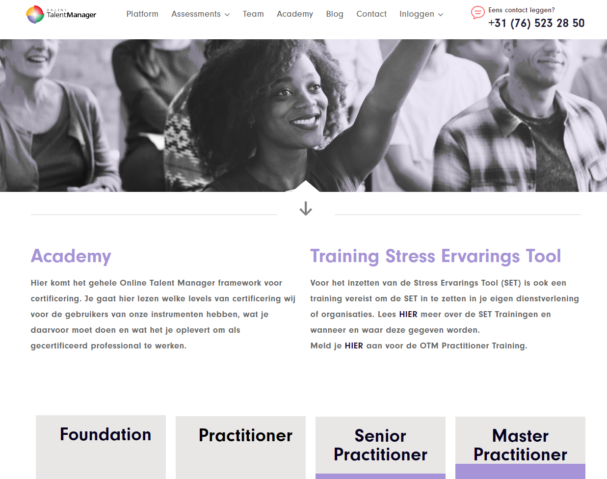 Ontwerp en implementatie website in WordPress OTM biedt het meest brede data-gedreven HR-Tech Platform dat mens en organisatie ondersteunt in het ontdekken, ontwikkelen, verzorgen van 360 graden feedback en mobiliseren van talent.